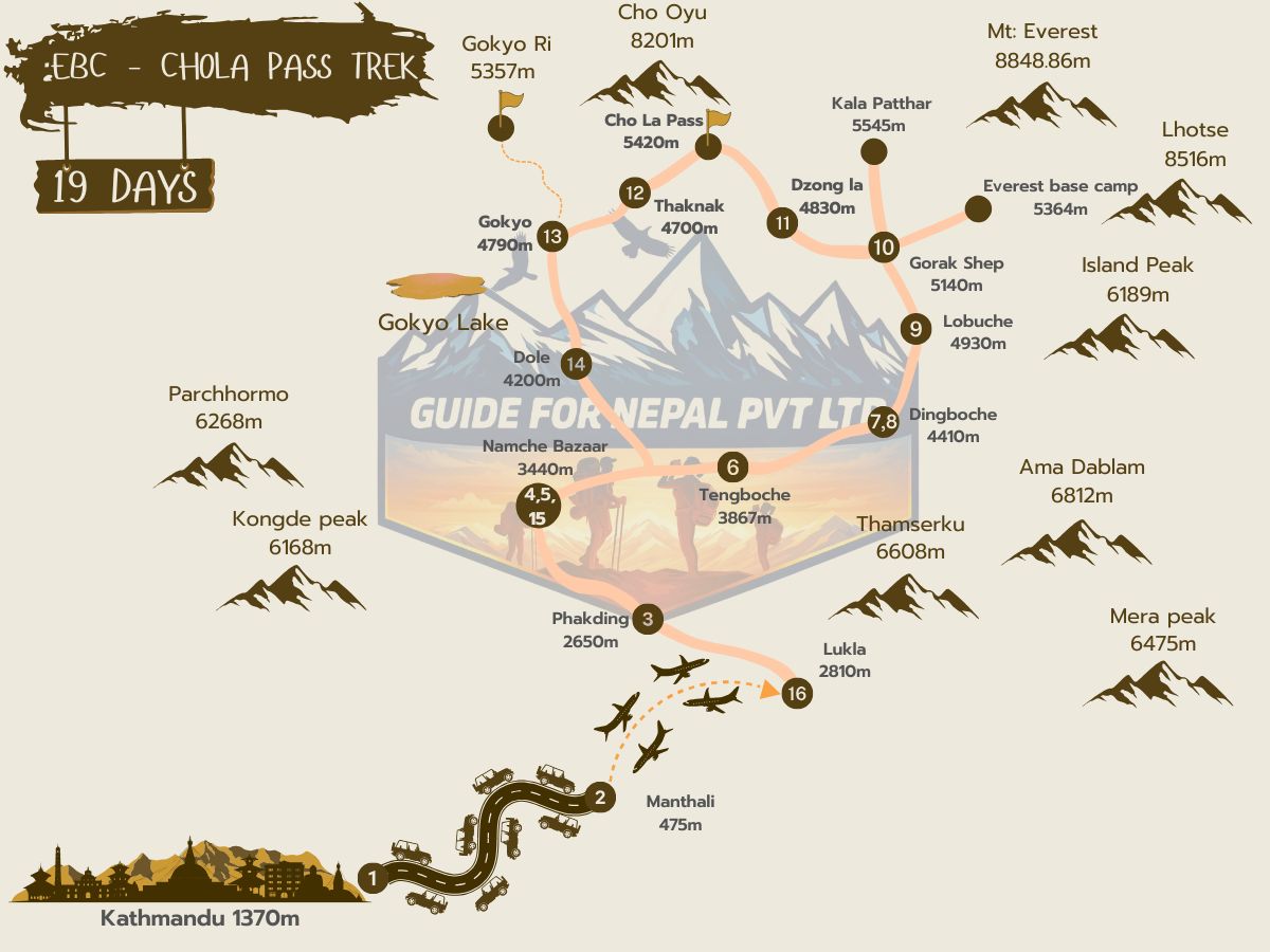 Below is our day to day Itinerary of the Everest Base Camp - Cho La Pass - Gokiyo Trek - 19 Days.