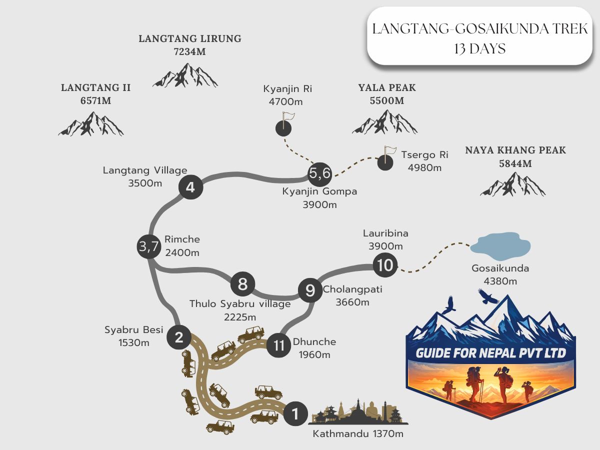 Below is our day to day Itinerary of the Langtang Valley Trek - 13 Days.