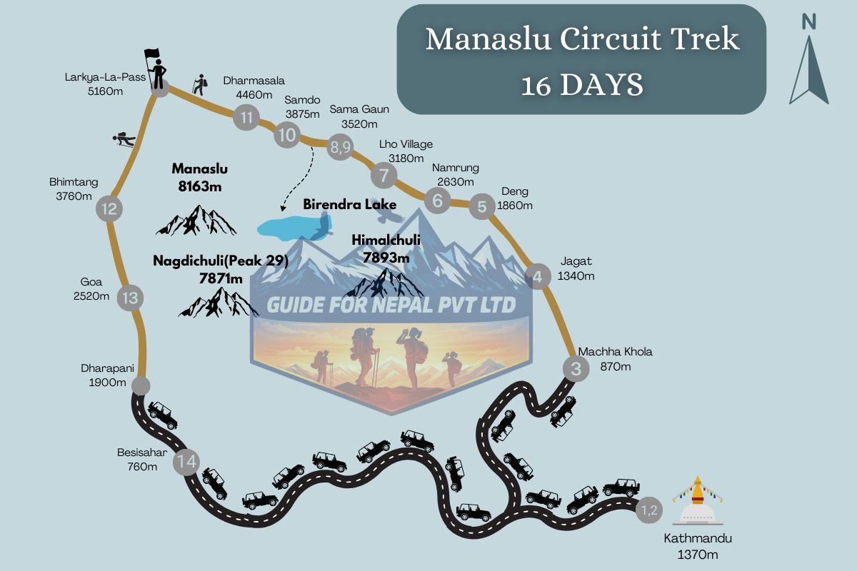 Below is our day to day Itinerary of the Manaslu Circuit Trek - 16 Days.