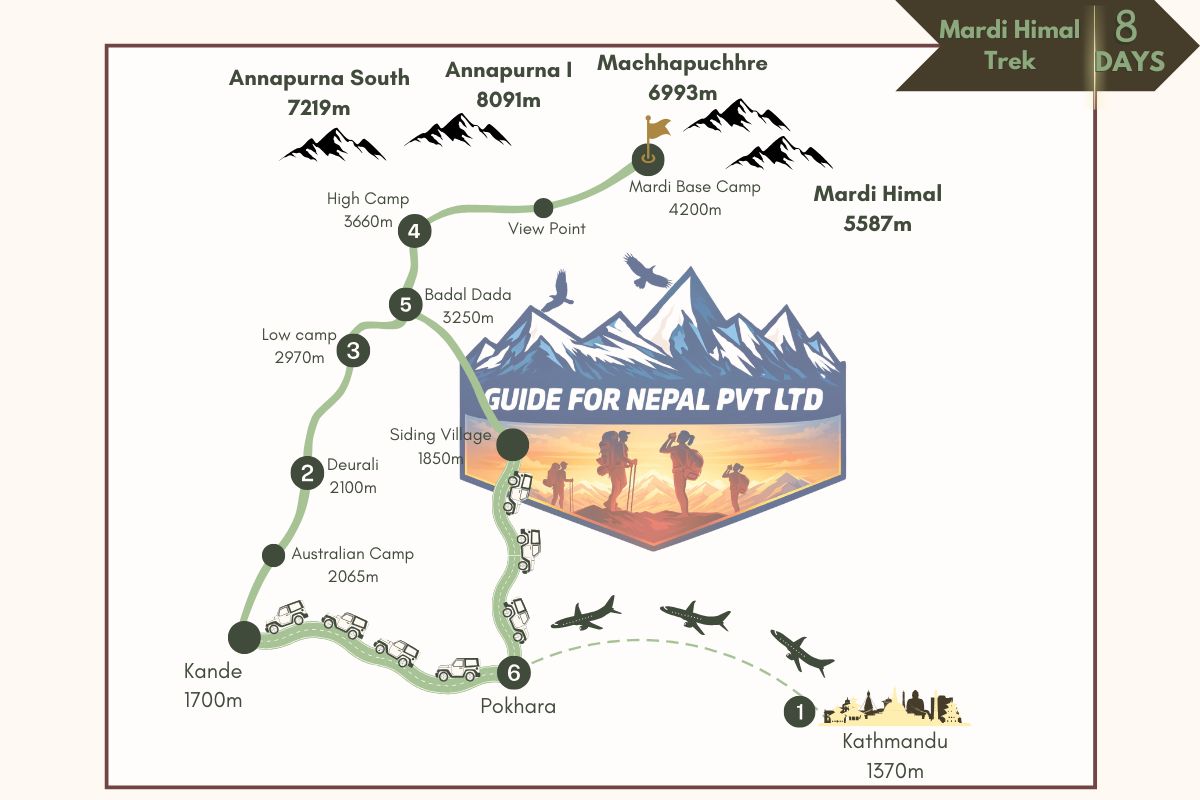 Below is our day to day Itinerary of the Mardi Himal Trek 8 Days.